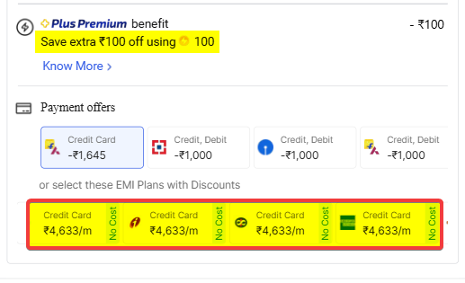 | (-) 💳 ICICI / Kotak Mahindra / Bajaj Finserv Bank Credit Card (No Cost EMI) | (₹4633) |