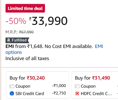 Incl.₹4250 Off Axis Bank CC EMI + ₹1500 Coupon