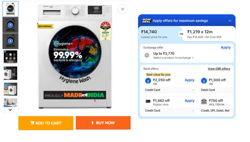 Incl. ₹2919 Discount Flipkart Axis Credit Card
