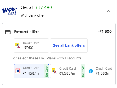 Incl.₹4000 off HDFC Bank CC EMI + ₹1500 Coupon