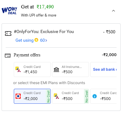 Incl.₹4000 off HDFC Bank CC EMI + ₹1500 Coupon