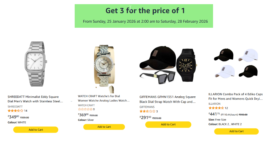 Watch,Sunglassess & Cap Loot ( Buy 1 & Get 2 Free )