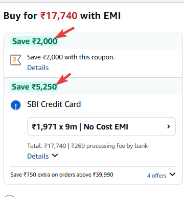 Incl.₹14500 off HDFC Bank CC EMI+ ₹4000 Coupon
