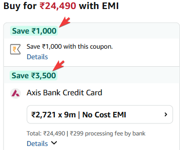 incl.₹3500 Off With Axis Bank CC EMI + ₹1000 Coupo