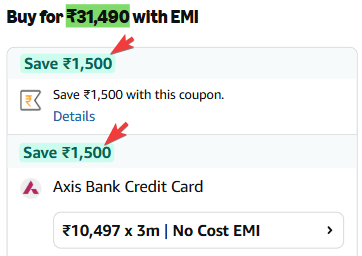 Incl.₹1500 off Axis Bank CC EMI+ ₹1500 Coupon