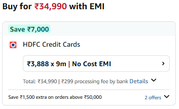 Incl. ₹2500 with HDFC bank CC + ₹500 coupon