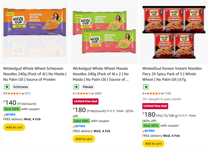 Wickedgud Noodles Starting @ ₹70 on Amazon.