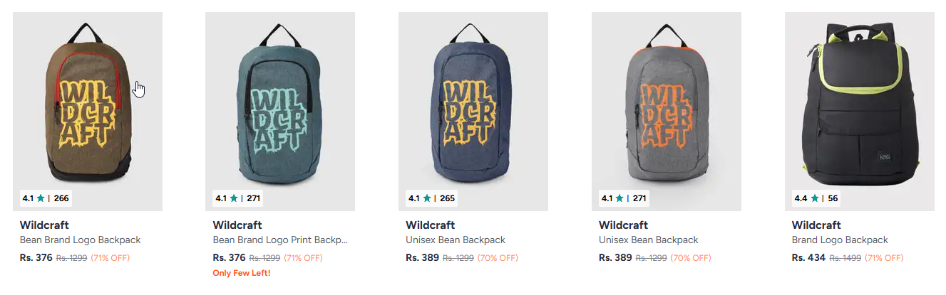 Wildcraft bagpack upto 70% discount on myntra