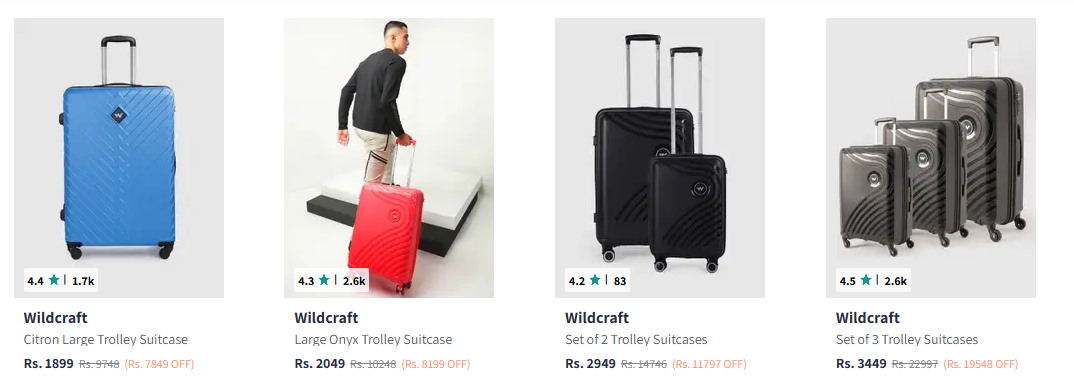 Wildcraft Trolley Bag at minimum 80% Discount is available on Myntra.
