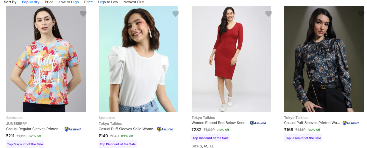 Women Fashion Clothes Starting @ ₹140 available online in India at an offer price of ₹140 on Flipkart. Discounted Price: ₹140. This deal was updated by @nandkishor on 02nd October, 2025 at 11:57 AM.
