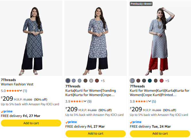 Women Printed Kurti Upto 90% Discount on amazon.