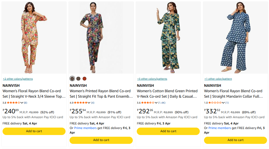 UP TO 92% OFF - Women's Co-ord Set @ Starting ₹232, Avilable on Amazon.