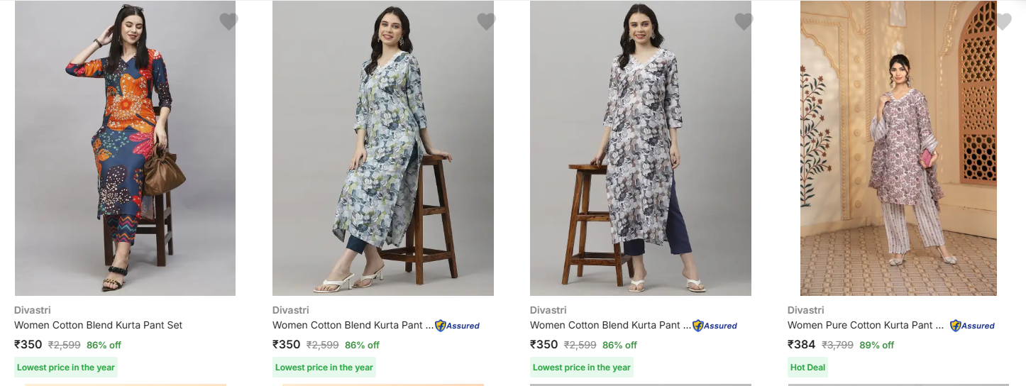 Women's Ethnic Sets upto 89% Discount is available on Flipkart.