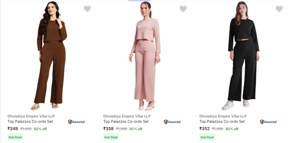 Women's Top & Palazzos Co-ords Set @ Starting ₹349, Available on Flipkart.