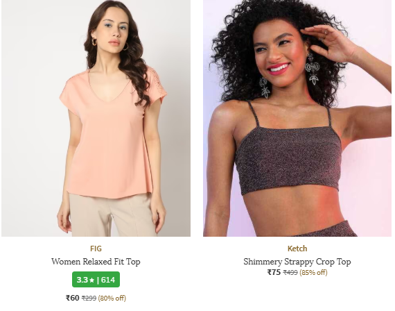 Womens Tops & Tunics Starting @ ₹60 on Ajio.