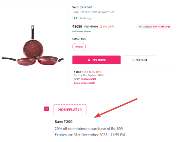 Wonderchef Tivoli 3 Pieces Red Cookware Set