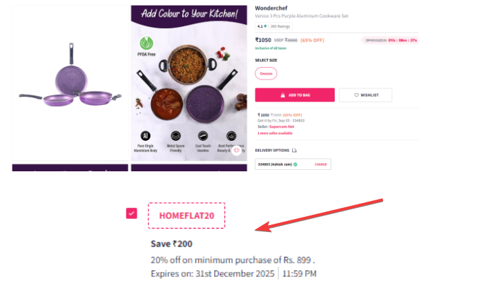 Wonderchef Venice 3 Pcs Purple Aluminum Cookware Set