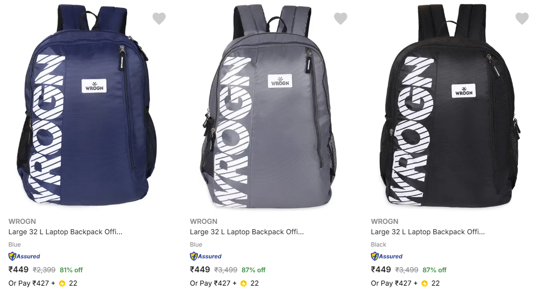 Wrogn Backpacks upto 87% Discount is available on Flipkart.
