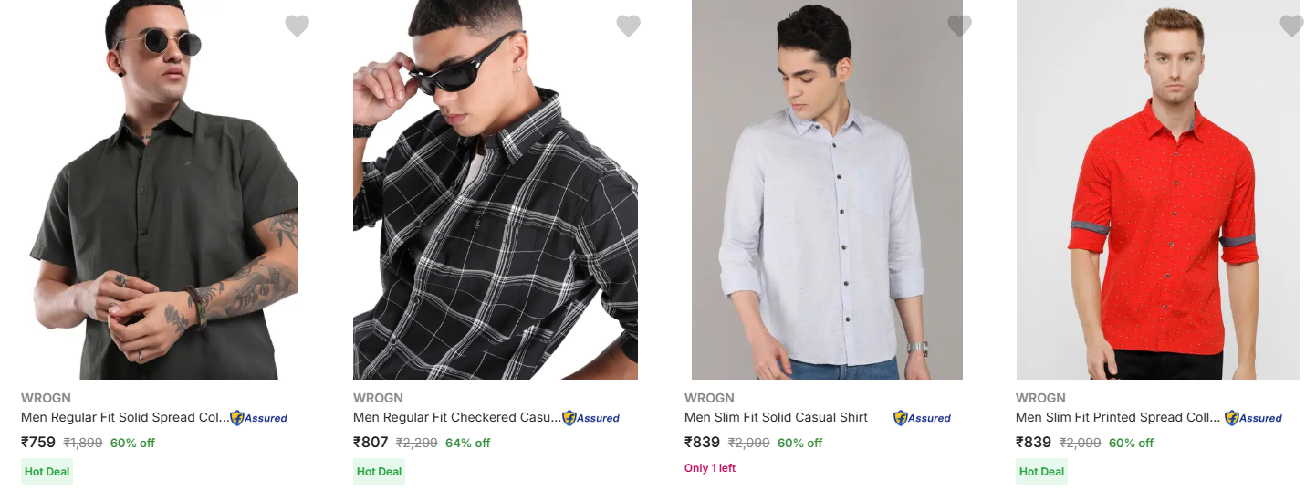 Wrogn Casual Shirts at minimum 60% Discount is available on Flipkart.