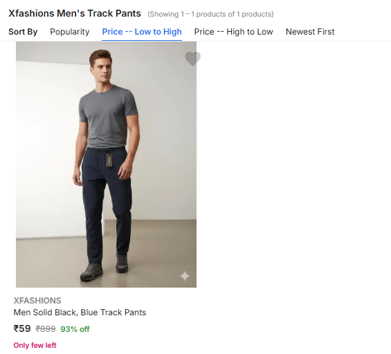 Xfashions Mens Track Pants available online in India at an offer price of ₹59 (93% discount from MRP) on Flipkart. Discounted Price: ₹59. MRP: 899. Savings: ₹840. Discount: 93%. This deal was updated by @kankariya on 10th March, 2026 at 9:41 AM.