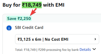 Incl. ₹2250 Off SBI CC With EMI