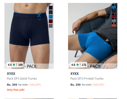 Xyxx Men's Trunk Pack Of 5 at ₹399 available online in India on Myntra. Offer Note: ₹80 for per pcs. This deal was updated by @kankariya on 11th January, 2026 at 8:01 AM.