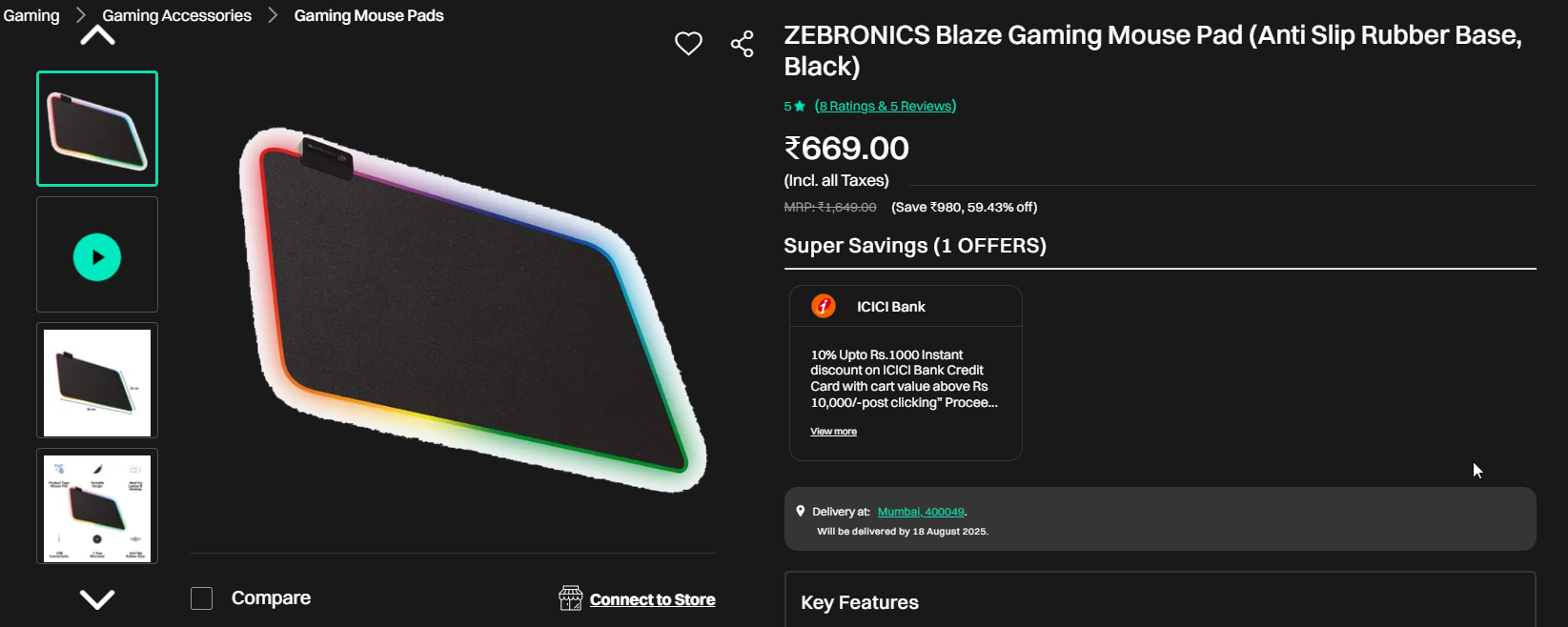 ZEBRONICS Blaze Gaming Mouse Pad (Anti Slip Rubber Base, Black).