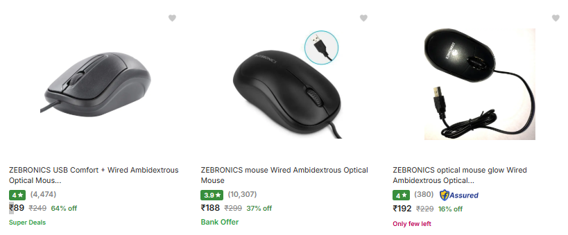 ZEBRONICS Byte Wired Optical Mouse with 3 Buttons, High Precision, 1000 DPI, Works on Most Surfaces, Plug & Play, USB Interface, 1.3m Cable Length