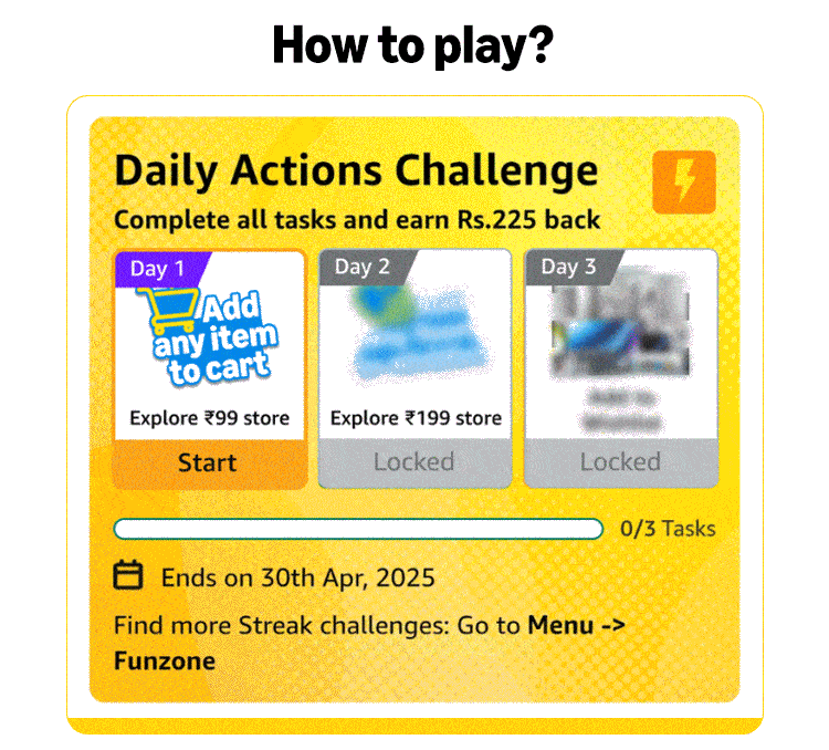 Amazon is back with the exciting Ultimate Reward Rush on Funzone! Play every day, complete simple actions, and collect FunZone Coins to unlock amazing rewards. By finishing all the tasks, you can win up to 170 FZ Coins. Start your reward journey now and make every action count!